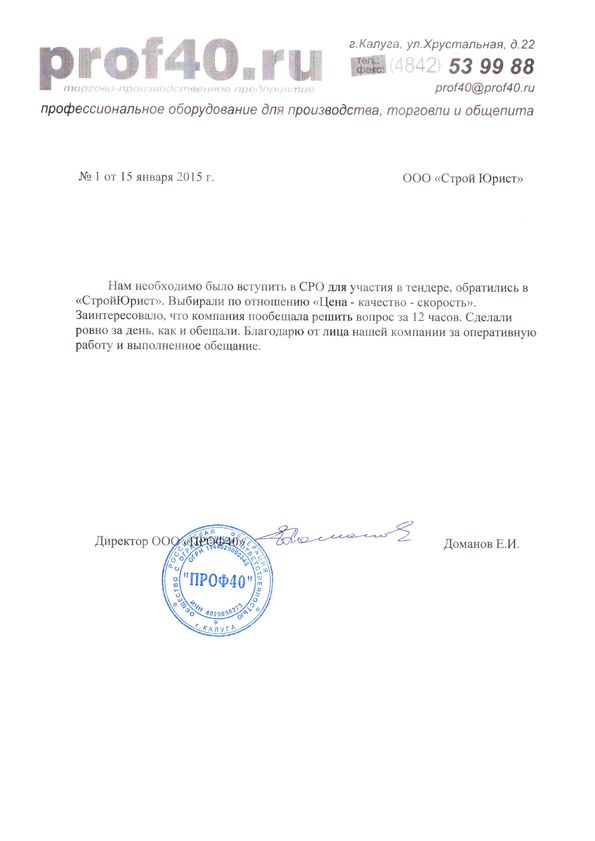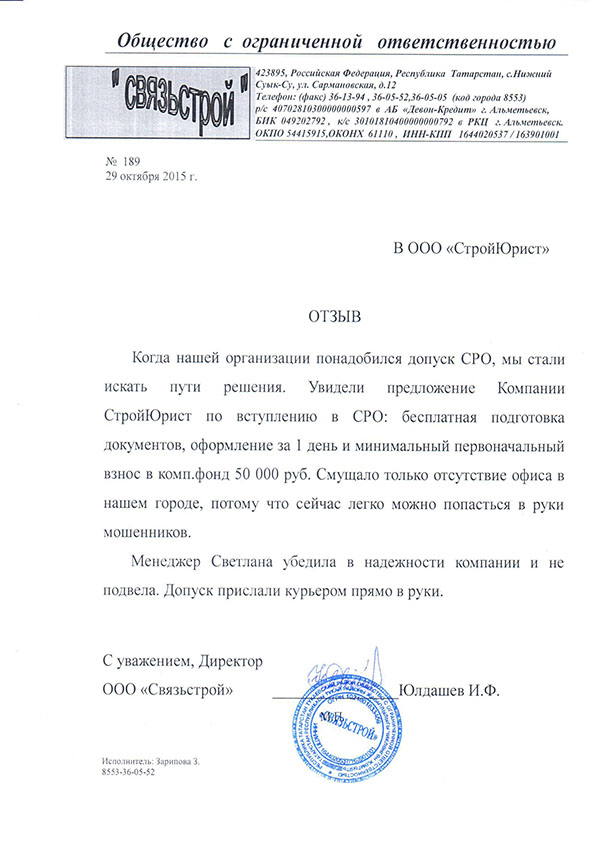 Отзывы клиентов "СтройЮрист" по вступлению в СРО в Костроме