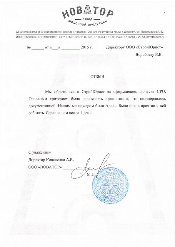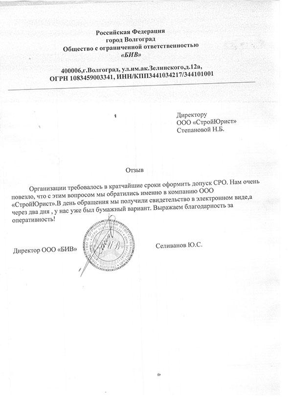 Отзывы клиентов "СтройЮрист" по вступлению в СРО в Костроме
