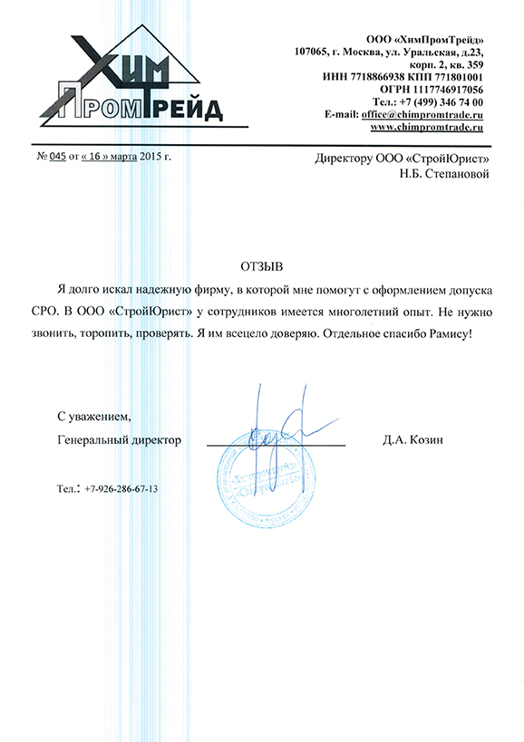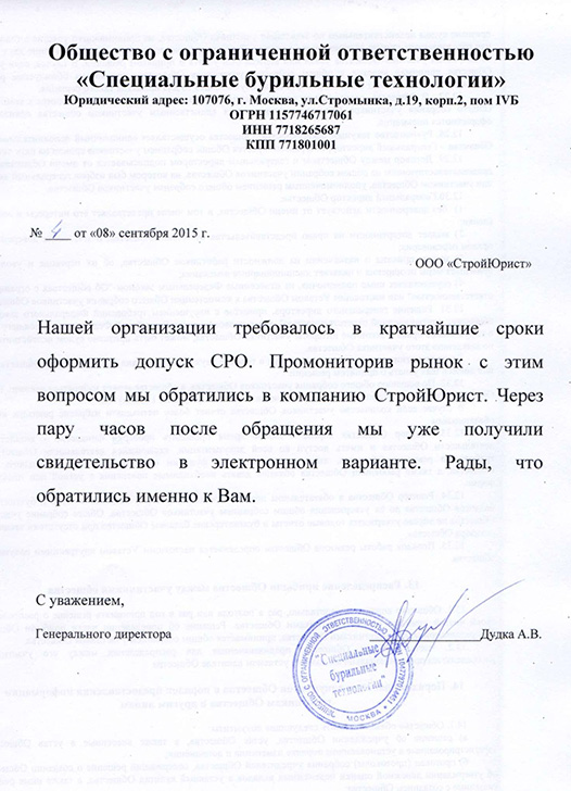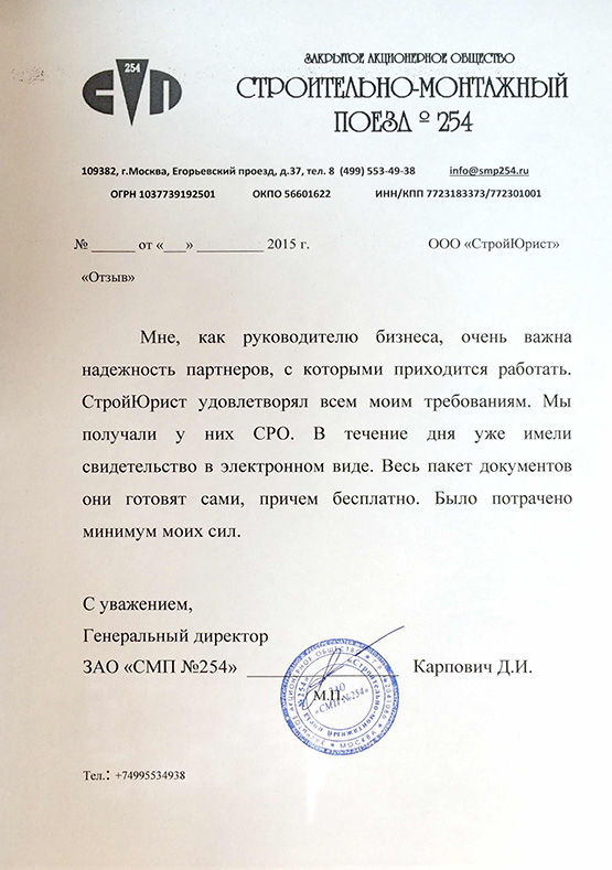 Отзывы клиентов "СтройЮрист" по вступлению в СРО в Костроме