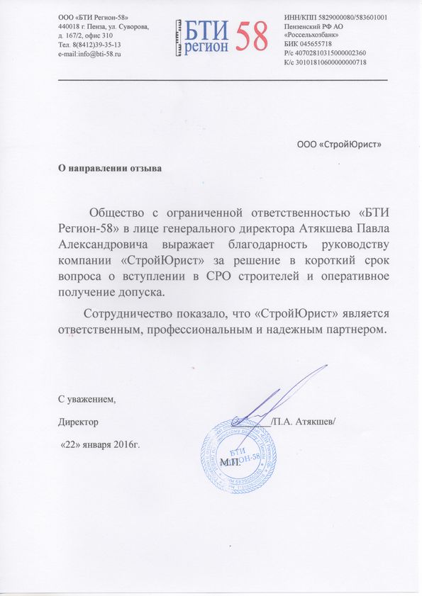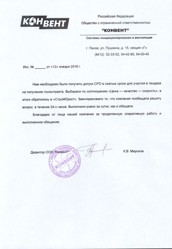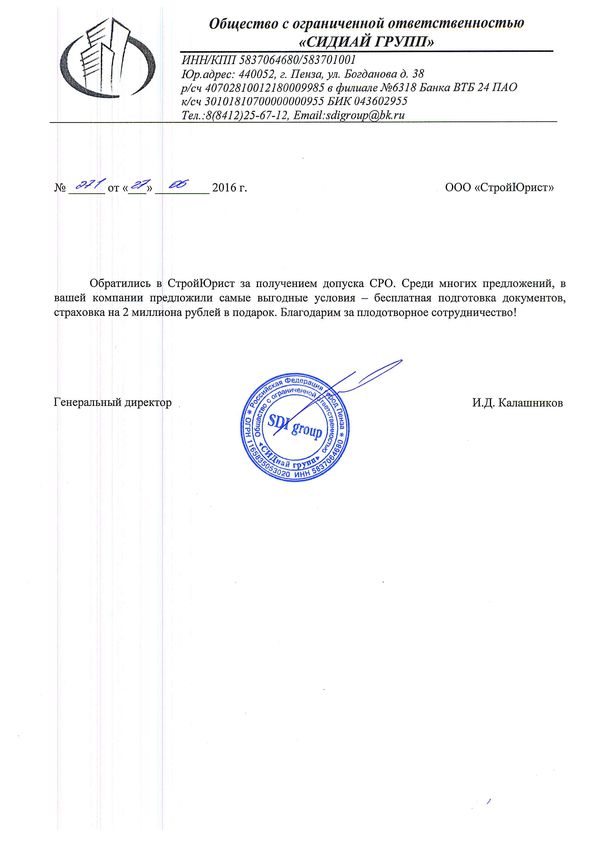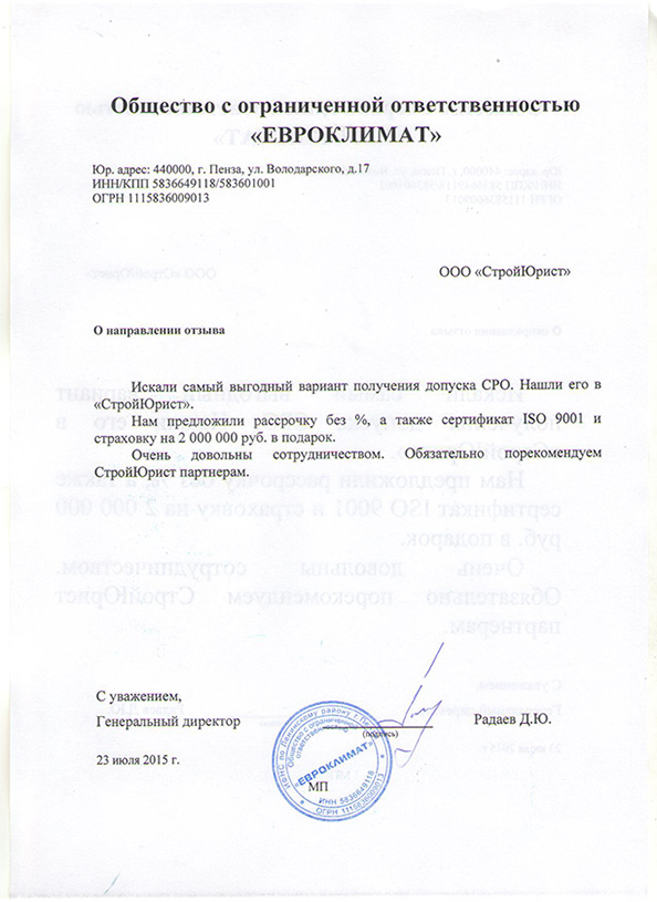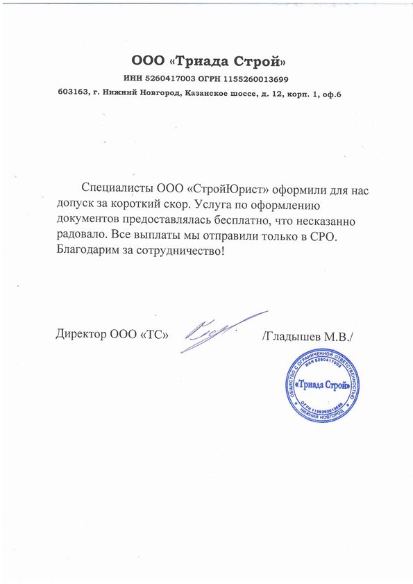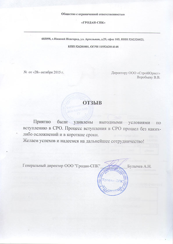 Отзывы клиентов "СтройЮрист" по вступлению в СРО в Костроме