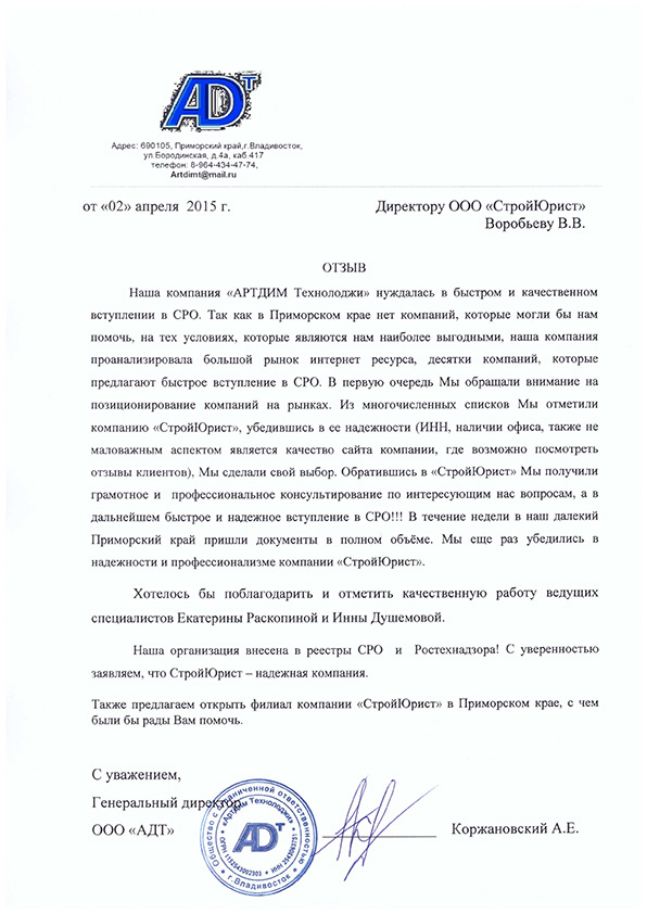 Отзывы клиентов "СтройЮрист" по вступлению в СРО в Костроме
