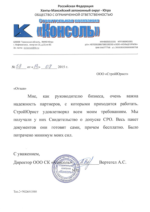 Отзывы клиентов "СтройЮрист" по вступлению в СРО в Костроме