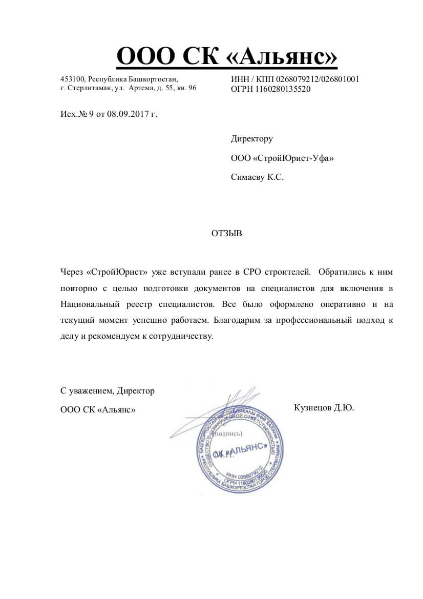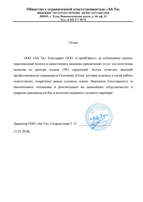 Отзывы клиентов "СтройЮрист" по вступлению в СРО в Костроме